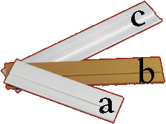 | Barvy profilu G-61-61 a - elox stříbrný matný b - elox zlatý lesklý c - přírodní hliník      (pro další úpravy) |